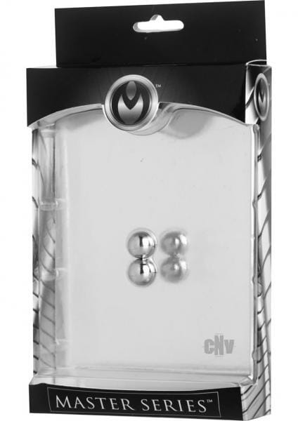 Magnus Mighty Magnetic Orbs from Master Series. Bring them to their knees in powerfully pinched pleasure. This set of two ultra magnetized orbs may be small in size, but these intense balls pack some serious pressure. Once placed on sensitive flesh, these extremely powerful magnets begin to apply pressure. Make a game of seeing how long they can keep these pinching set of extra strong magnets in place. As your plaything relaxes, the pressure will continue to give them what they have been craving. Each ball measures 0.37 inch in diameter.